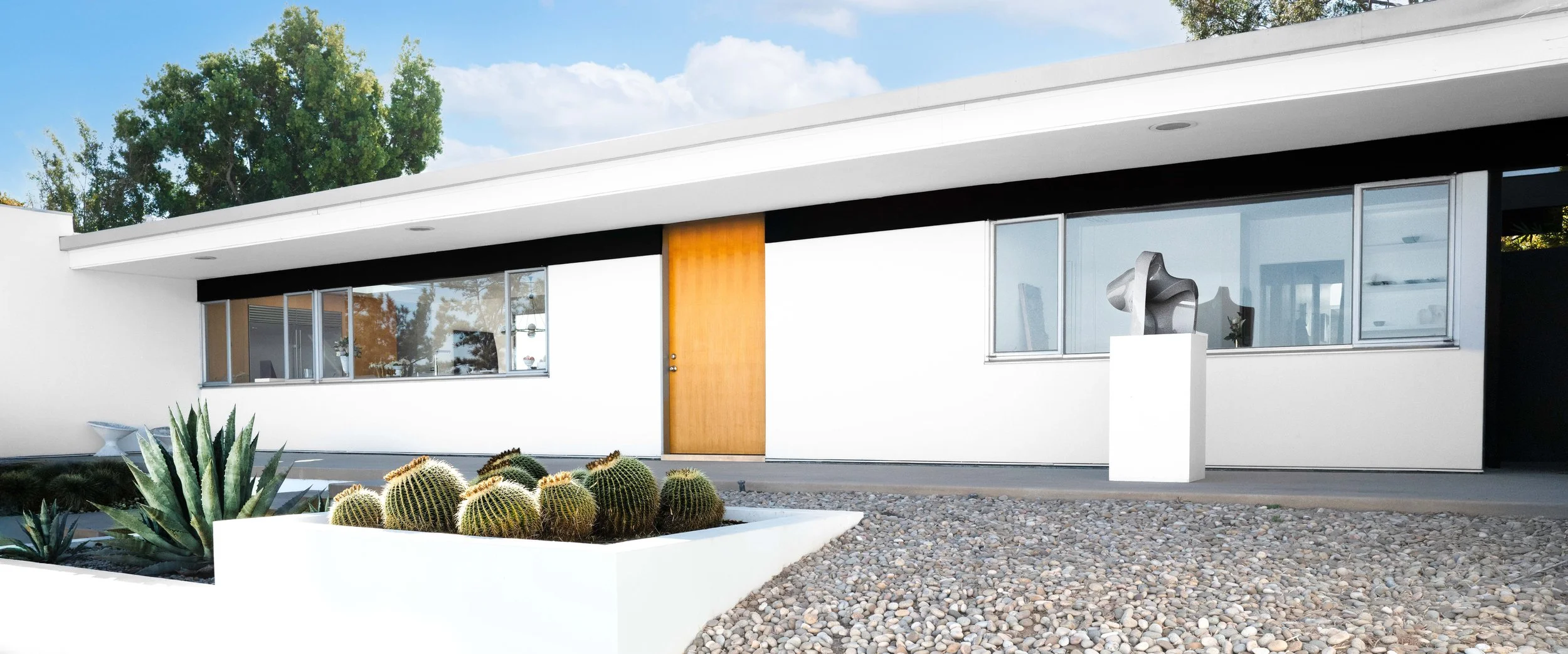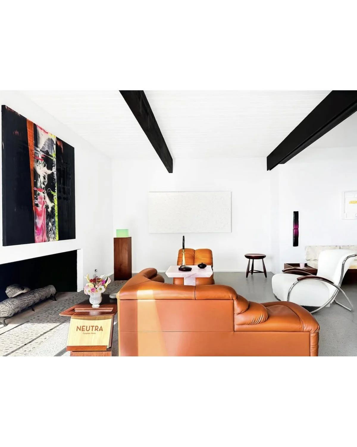 This site-specific installation, curated by Peter Blake, traverses the disciplines of art, design, and architecture, bringing historically significant modern design and museum-quality contemporary art into dialogue with Neutra’s geometric architectural sensibilities. Completed in 1961, this late Neutra embodies California modernist architecture with a signature indoor-outdoor design philosophy. Neutra’s skillful positioning of the home encourages breathtaking views spanning the majestic purple mountains of San Gabriel on one side to the skyline of downtown LA and the Pacific Ocean on the other.