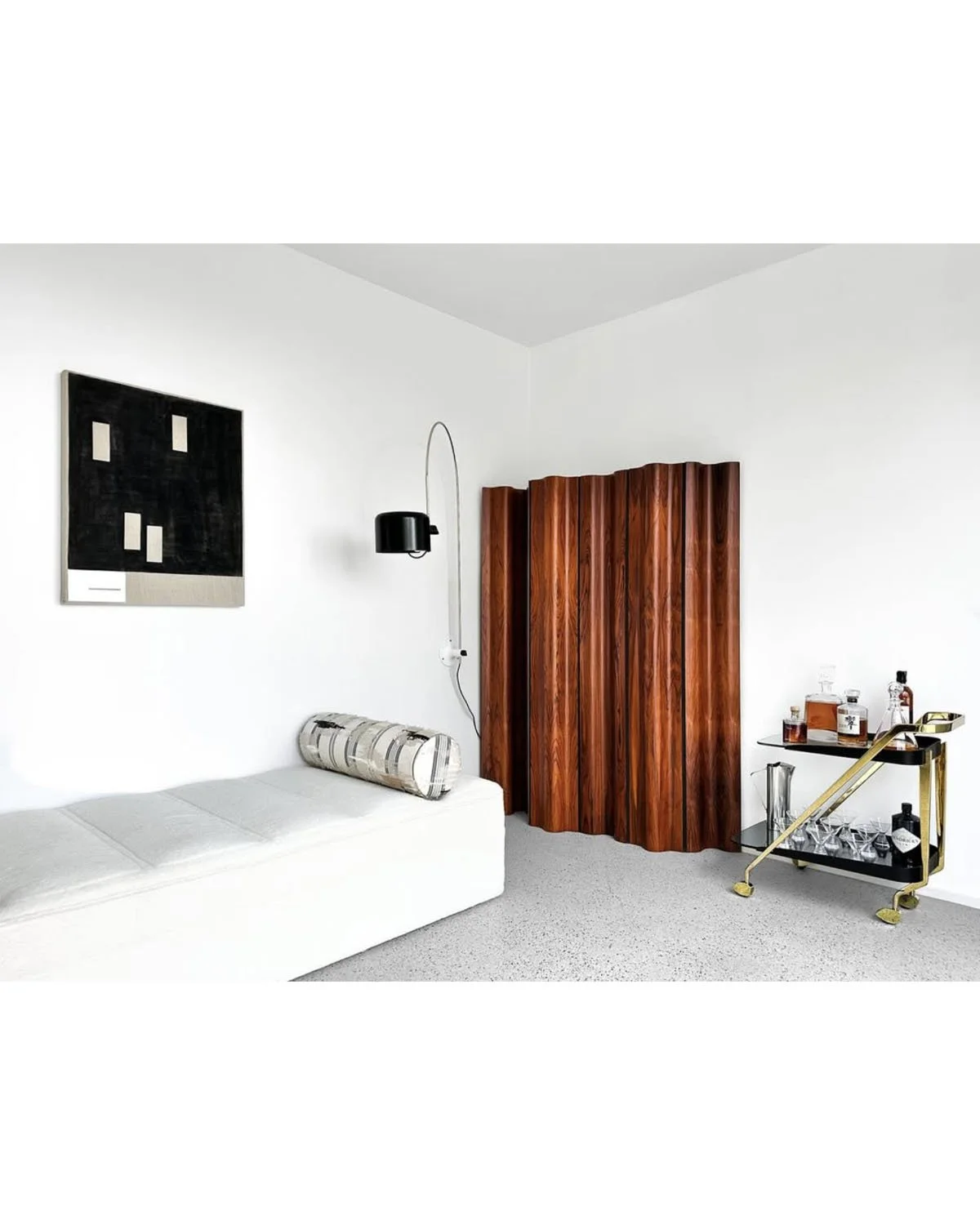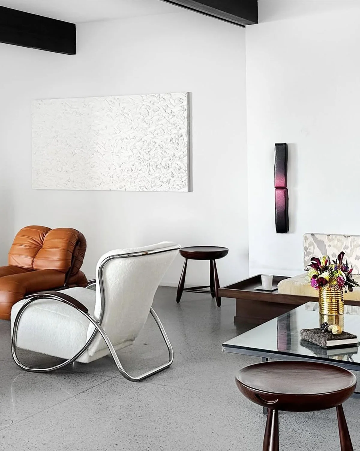 Design includes works by Milo Baughman, Osvaldo Borsani, Marzio Cecchi, Joe Colombo, Charles Eames, Paul Evans, Eileen Gray, Willy Guhl, Pierre Guariche, Max Ingrand, Alexander Knoll, Percival Lafer, Jean-Pierre Laporte, Sol LeWitt, Angelo Mangiarotti, Carlo Molino, Otto and Gertrud Natzler, Rick Owens, Jens Risom, Sergio Rodrigues, Afra and Tobia Scarpa, Ettore Sottsass, Kem Weber, Ubald Klug, Mathieu Matégot, among others.